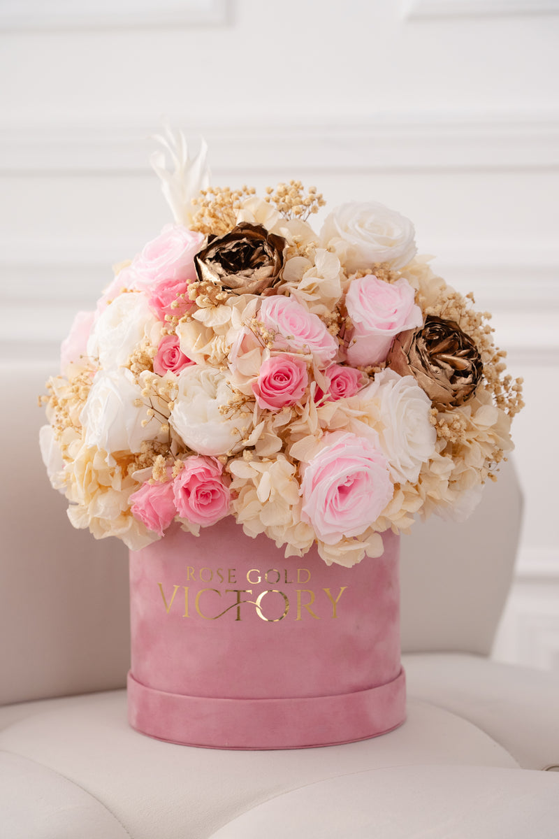 Immerse in the refined beauty of our Eternity Roses, each meticulously chosen for its exquisite form and impeccable grace, casting an aura of timeless elegance.