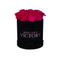 Rosas violetas en caja de corazón negro (SM)